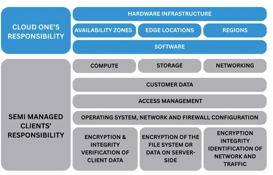 Security and Compliance is a shared responsibility between Cloud One and the customer. This policy outlines the responsibilities of both Cloud One and our clients in safeguarding data hosted on our cloud platform.